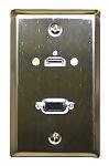 This is a single gang stainless steel wall plate with the following nickel plated feed-thru connectors: VGA (HD15 female) and HDMI female. Includes mounting screws. Feed-thru means that the same female connector is used on both sides of this wall plate for solderless connection.
